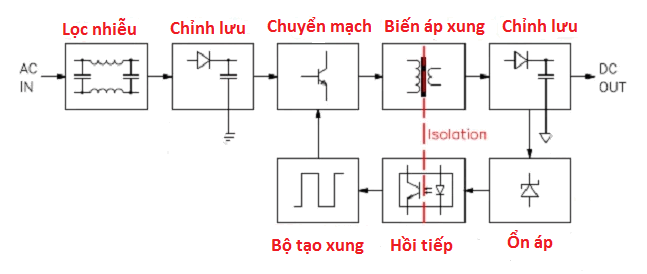 Sơ đồ khối nguồn tổ ong ( nguồn xung )