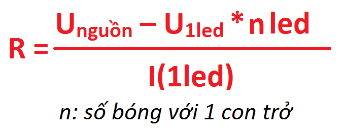 Công suất trở Nnhánh: P = Nnhánh(12V-3*U1led )*I1led .