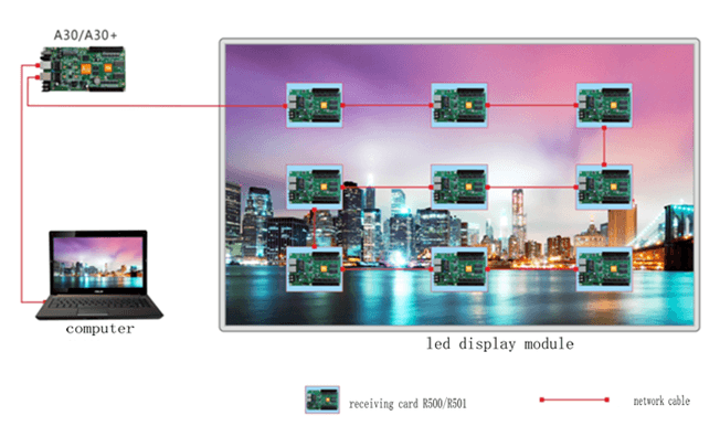| Các loại Module | Tương thích module trong nhà và ngoài trời, fullcolor và mô-đun màu đơn / đôi; Hỗ trợ module ảo; Hỗ trợ PWM chips như MBI5041/5042、 MBI5152/MBI5153、MY9221、MY9268. và PWM. |