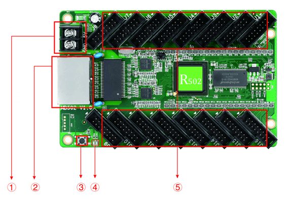 ⑤ 16 cổng HUB75B: Cổng kết nối LED.