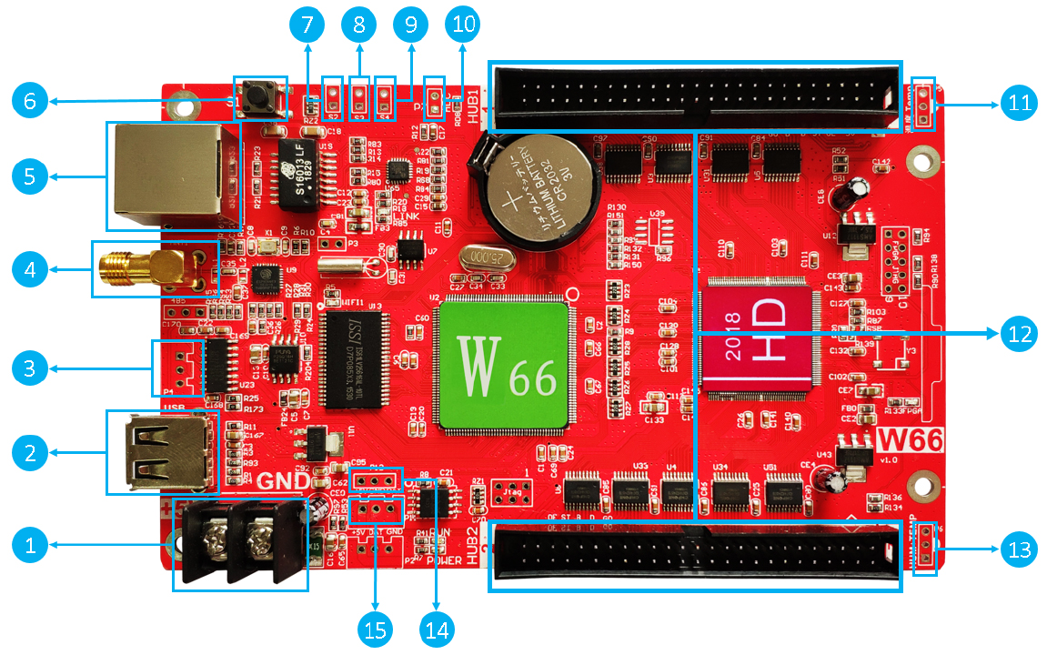 Card HD-W66 là card điều khiển Wi-Fi, cập nhật chương trình bằng kết nối Wi-Fi, nó có cổng USB, cũng có thể sử dụng U-disk để cập nhật chương trình. Chi phí thấp, không tốn kém, giao diện phần mềm đơn giản, dễ vận hành, hiển thị thông tin tốt hơn, hiệu ứng tốt, hỗ trợ nhiều loại màn hình đơn màu.
